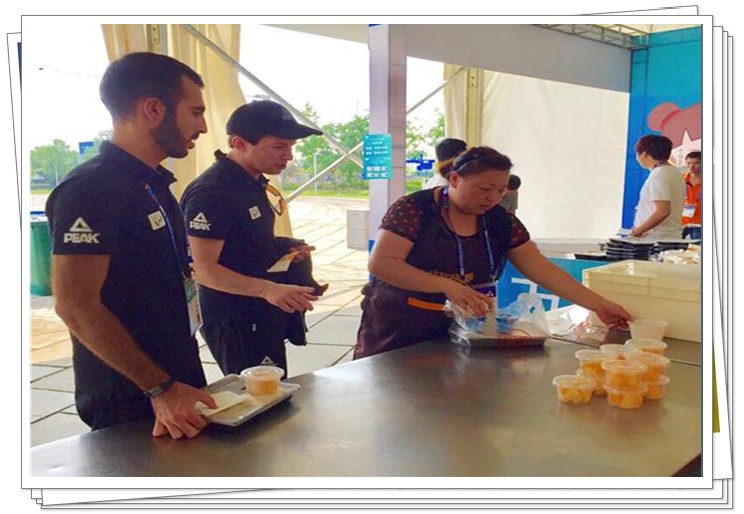 赛事期间,为确保服务工作的有序进行,公司组织专人专车全程服务,从凌晨四点开始忙碌到晚上十点才结束,每天准时准点的将3000余份精心制作的营养健康餐食送到赛事后勤工作人员手中,将近百种日用品、水果、休闲食品、西式面点等送达到服务地点。