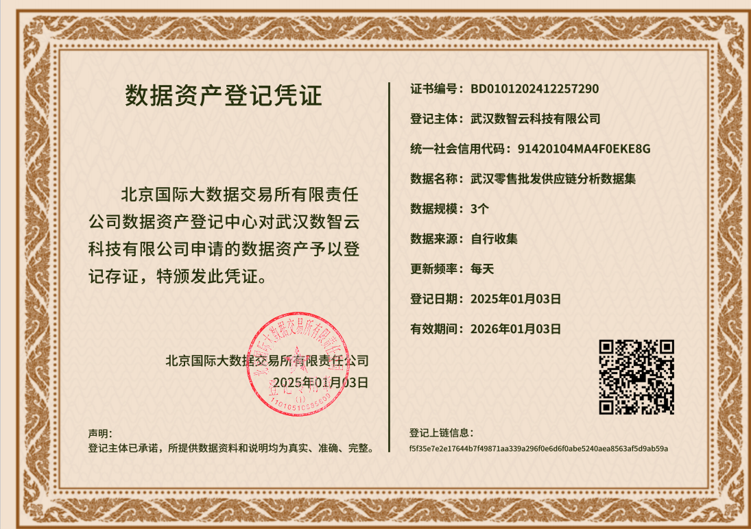 此次获得数据资产登记证书表明数智云公司的数据资产符合合法合规流通条件,为数据资产价值挖掘提供保障,体现了公司在数据产权界定与保护方面的能力,为公司数据交易市场合法运营奠定基础。